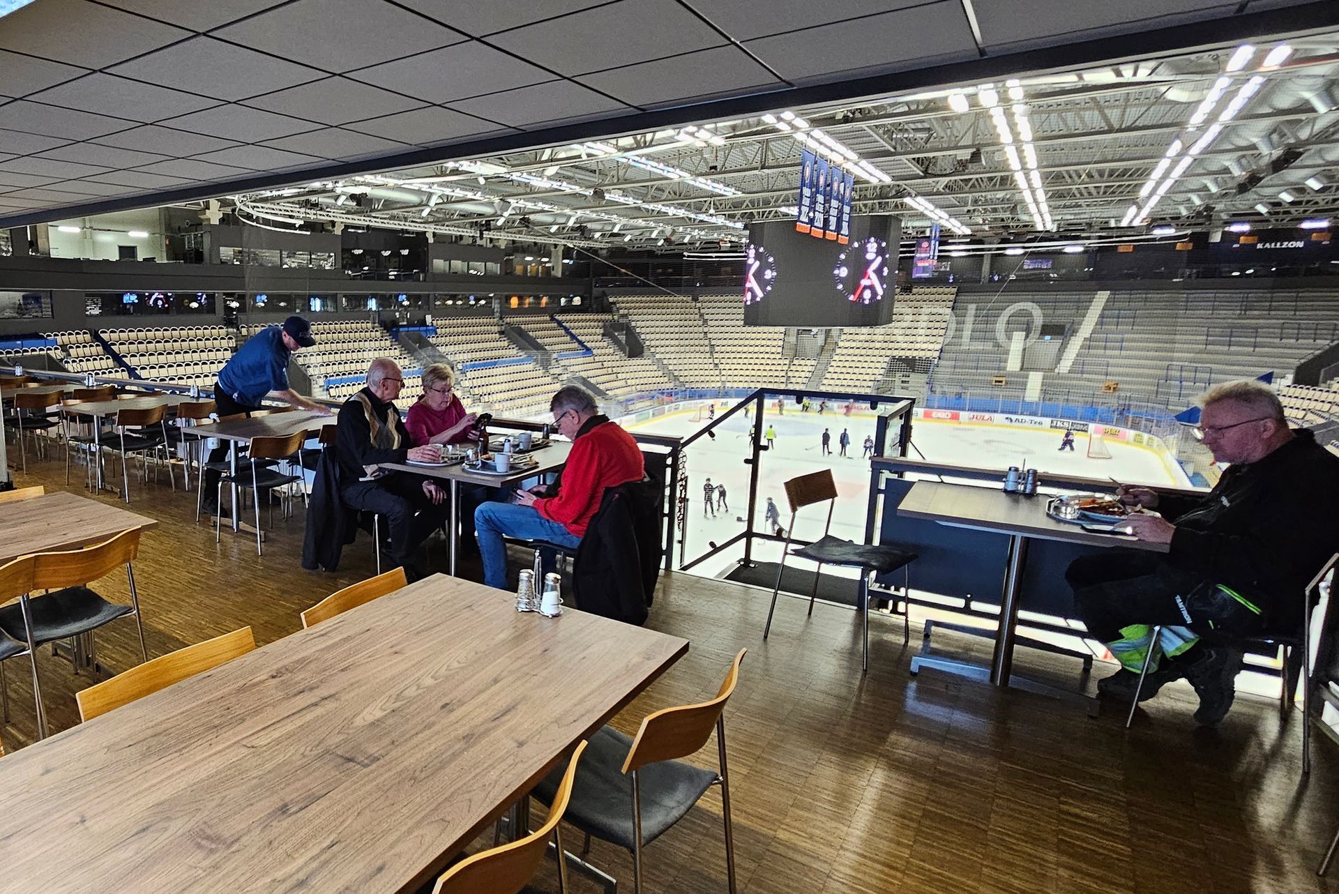 Kulinarisch statten wir dem Mittagstisch im Eisstadion von Växjö erstmals einen Besuch ab. Besonders dabei: Man speist mit unverstelltem Blick auf die Eisfläche, von der es tatsächlich kühl herüberweht. Mit Glück findet dort gerade Betrieb statt, und man kann zusehen. Bei uns trainierten einige Eishockey-Kids. Außerdem erwähnenswert: Von drei angebotenen Gerichten in Büffetform ist immer eins vegetarisch!