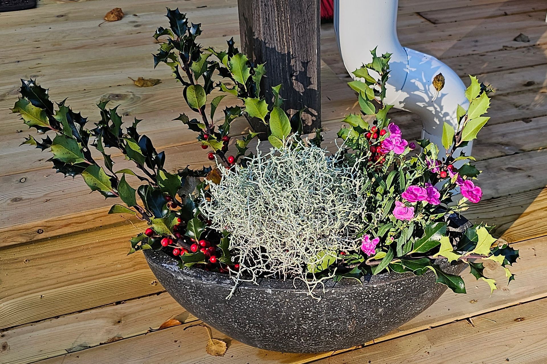 Herbst 2023. Wir sind für zehn Tage im Häuschen. Das Wetter ist frisch und wechselhaft, aber besser als im verregneten Hamburg. Eine schöne Überraschung beim Ankommen: Ein Blumengruß steht auf der Terrassentreppe. Wie wir später erfahren, haben liebe Nachbarn Heinzelmännchen gespielt.